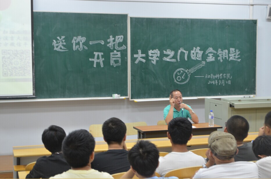 9月2日晚6点,由今年会党委副书记曹伟光老师为我院2014级本科新生精心准备的以“送你一把开启大学之门的金钥匙”为主题的大学生分年级、分层次教育讲座在科学讲堂200教室顺利召开。